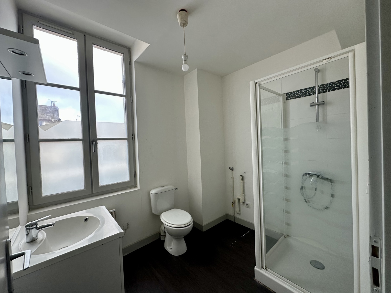 Situé au deuxième étage d’un bel immeuble en pierre, l’appartement se compose d’un séjour avec cuisine ouverte, offrant un espace de vie agréable et fonctionnel, accompagné d’une salle d’eau.